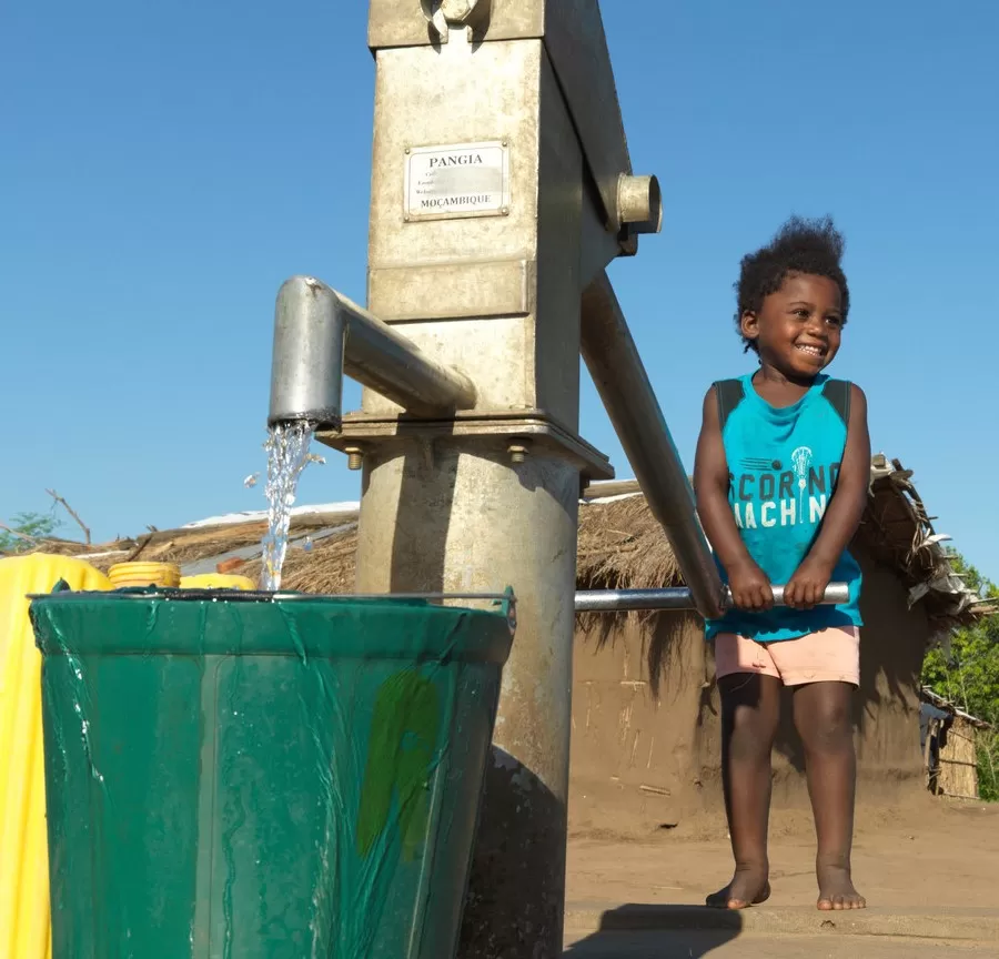Arminda* uses a water pump restored with DEC funds after it was destroyed during Cyclone Idai in 2019. Image: Peter Caton/DEC