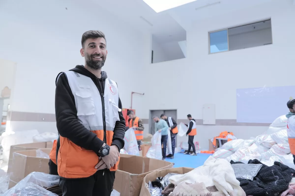 Salam, a volunteer with Wefaq organisation in Gaza and partner of DEC charity ActionAid, Feb 2025. Image: Wattan Media Network/ActionAid
