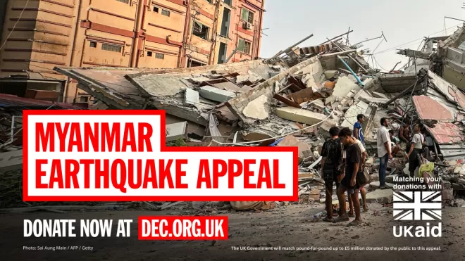 DEC Myanmar Earthquake Appeal raises £7.5 million on first day