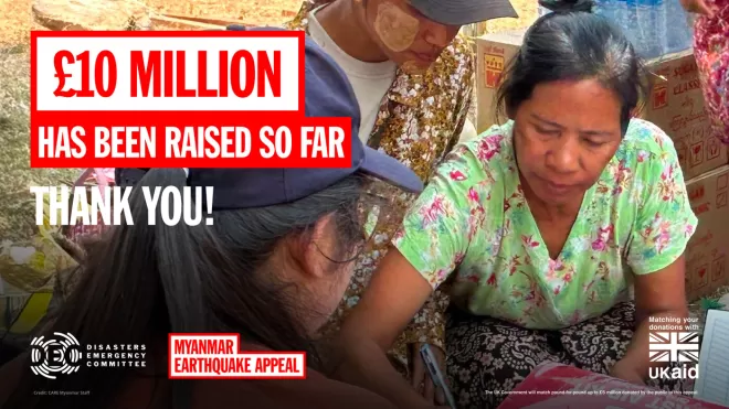 Over £26 million has been raised for the DEC Myanmar Earthquake Appeal.