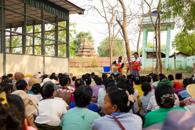 DEC charity World Vision visits communities to deliver water purification. Image: Nyi Thit