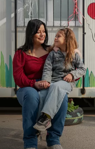 Güneş* with her mother Asi* at a DEC-funded Women and Children's Centre run by Oxfam KEDV in Hatay, Turkey, to support families living in prefabricated shelters after the earthquakes in February 2023. Image: Özge Sebzeci/Fairpicture/DEC