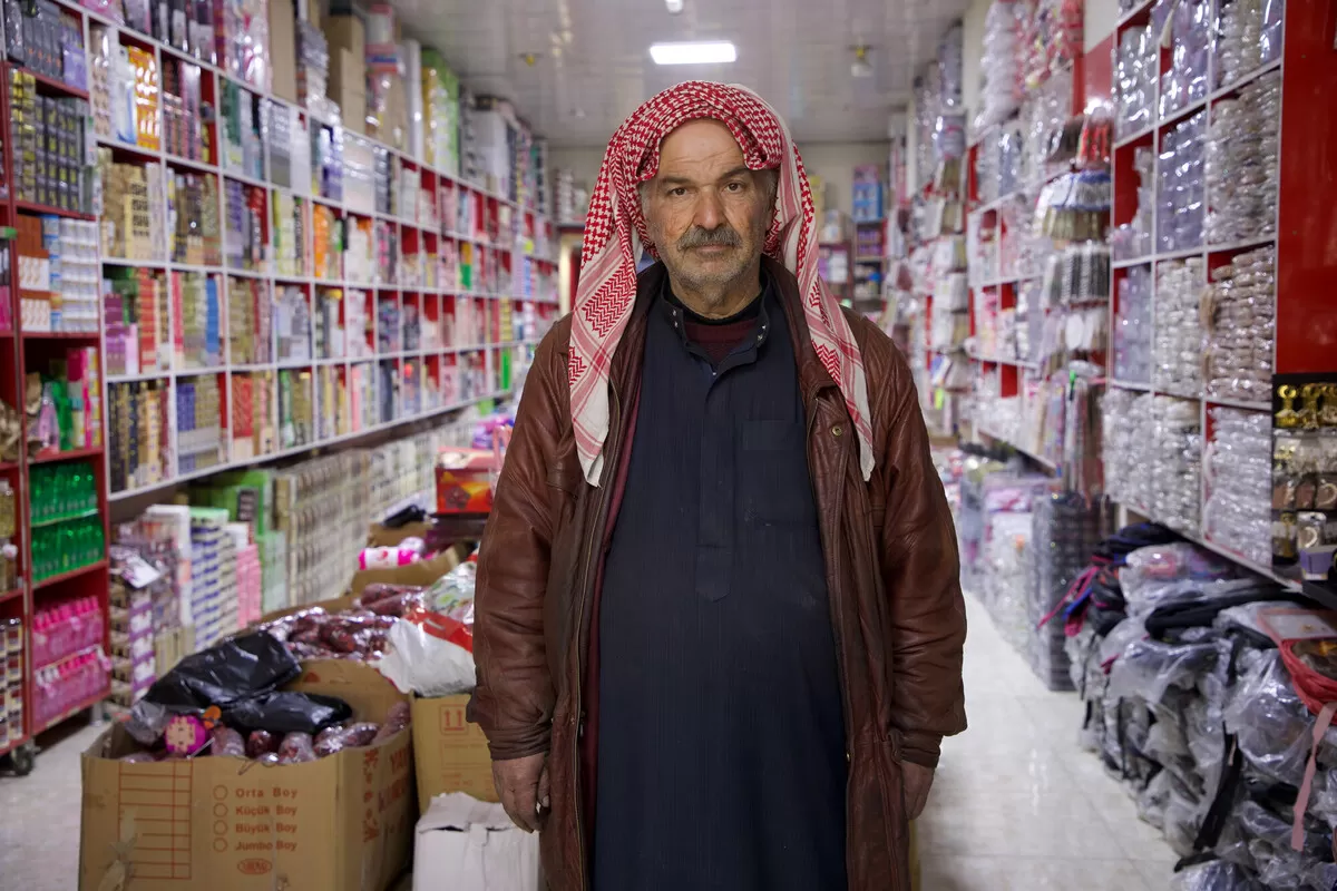 Murshid* at the shop where he now works after being provided with livelihood support by the local partner of DEC charity Age International. Image: Ali Haj Suleiman/Fairpicture/DEC