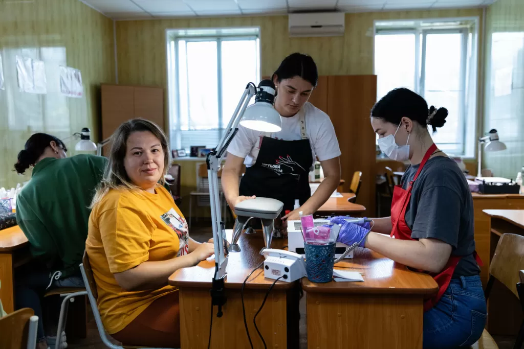 “I feel great here,” says Tatiana (right). “Our team is very kind and sympathetic. How can you not help people? Of course we can’t sit doing nothing, we want to work.”