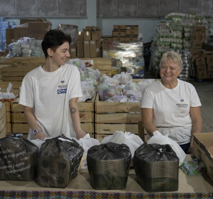 Having found their feet in new countries, many refugees begin volunteering to help others. At a warehouse run by a partner of Plan International using DEC funds in Chisinau, Moldova, many of the people sorting and packing food and other items, as well as offering advice, area refugees themselves.