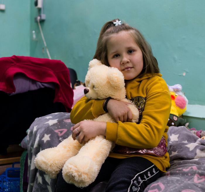 In Kharkiv, a local partner of CAFOD and Plan International provide generators, repairs, food and other items to the shelter where Olesia* is living. "We have electricity here so there’s an opportunity for our children to have an education," says her mum.