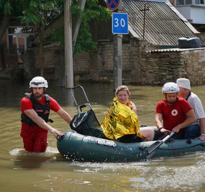 In the early hours of 6 June, an apparent explosion destroys the Kakhovka dam on the Dnipro river. The breaching of the dam causes water from the Kakhovka reservoir, which is at a 30-year high, to flow downstream flooding large areas, including parts of Kherson city.