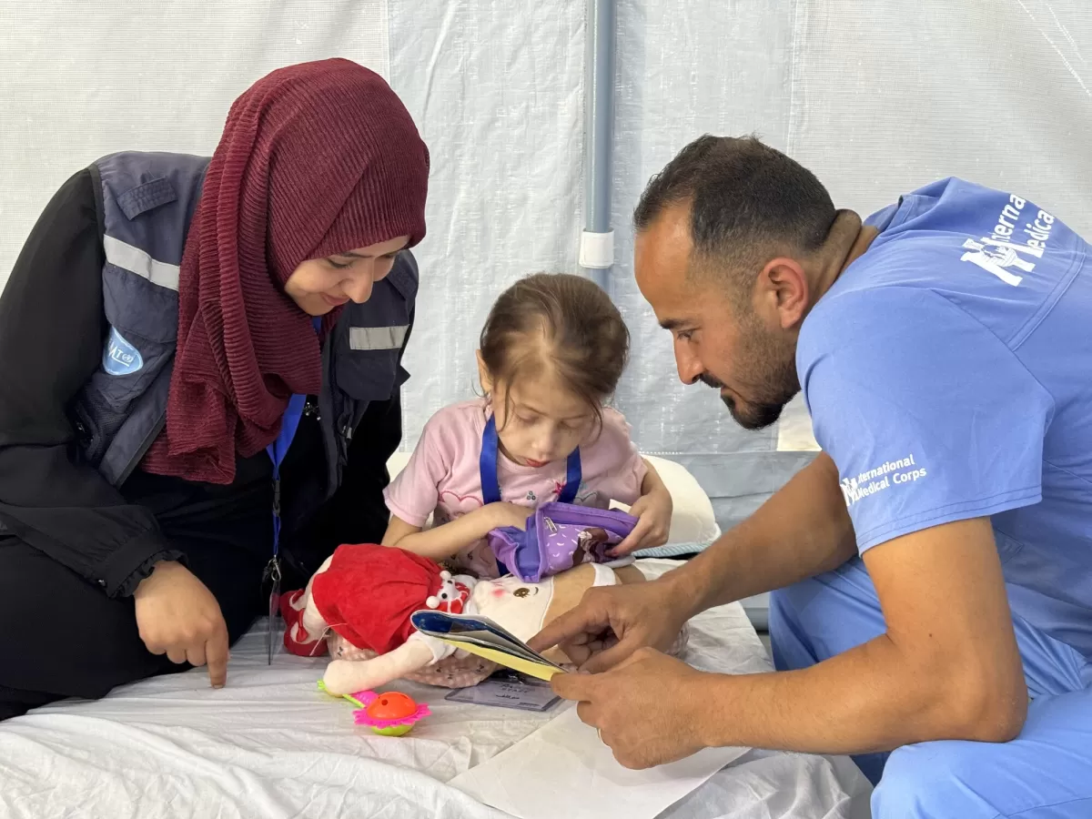 A young patient receives treatment at a field hospital in central Gaza through the local partner of a DEC charity.