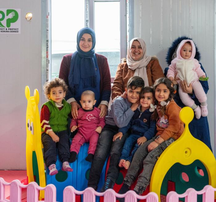 Güneş* with her mother Asi* at a DEC-funded Women and Children's Centre run by Oxfam KEDV in Hatay, Turkey, to support families living in prefabricated shelters after the earthquakes in February 2023. Image: Özge Sebzeci/Fairpicture/DEC