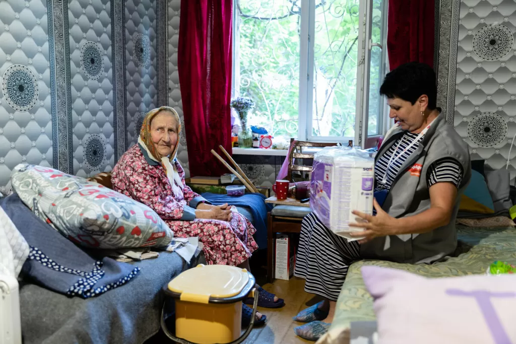 DEC charity Age International worked with its local partner to provide 'community safe spaces’ for older residents and displaced people across the eastern and western regions of Ukraine. DEC funds also provided home-based care to people who were unable to leave their homes, providing assistive mobility devices, hygiene items and psychological support.