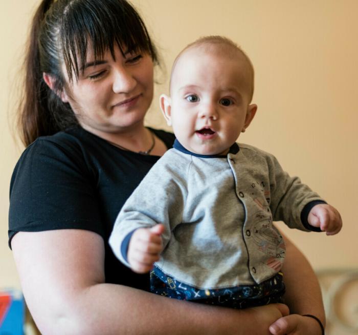 Five-year-old Daniel with social educators Tatiana (right) and Hetsyu (left) at a child-friendly space in Romania supported by DEC funds. Photo: Christopher Lete/World Vision