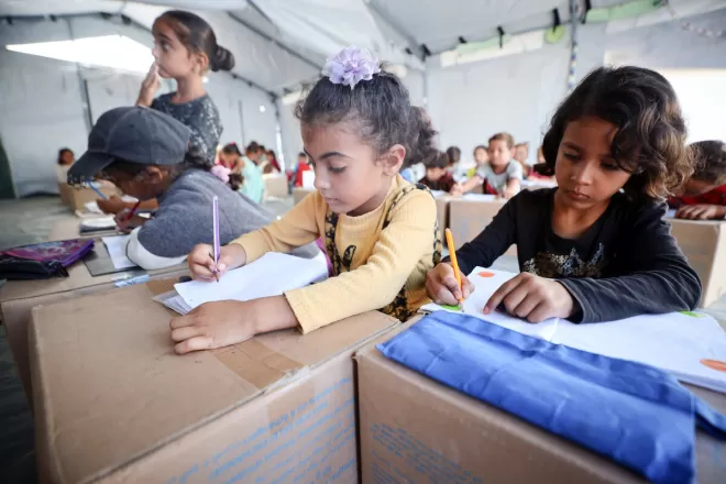 In Gaza, children are now unable to go to school for the second school year in a row, with 45,000 unable to start school for the first time.