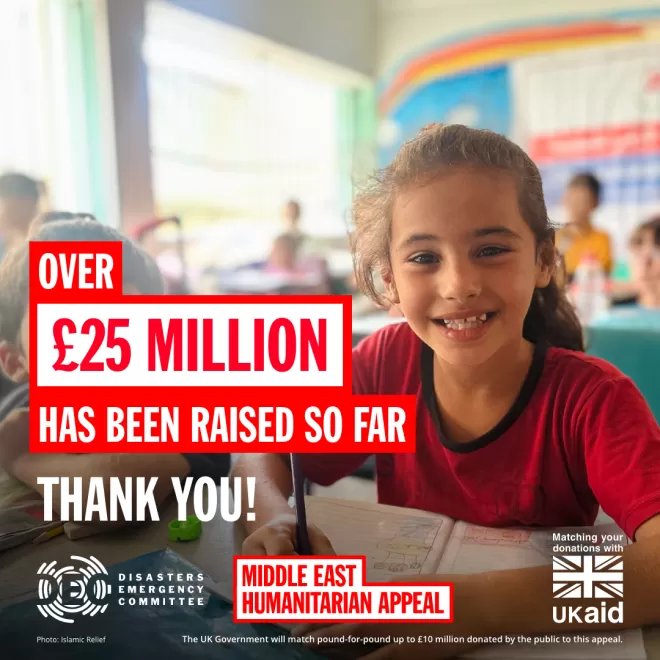 The Middle East Humanitarian Appeal has now raised over £50 million thanks to the amazing generosity of the UK public.