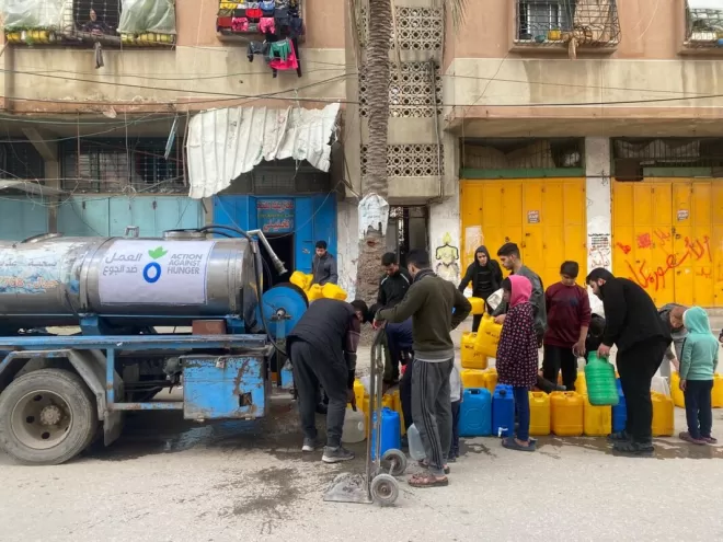DEC charity Action Against Hunger provides clean water in Gaza, Jan 2025.