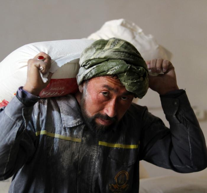 Kareem, aged 42, receives humanitarian aid at a distribution in Herat.