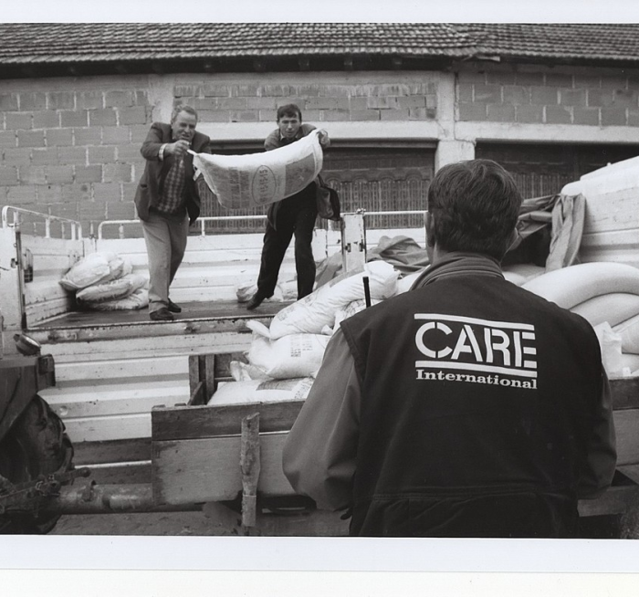A CARE team distributes relief items in Kosovo. Image credit: CARE International